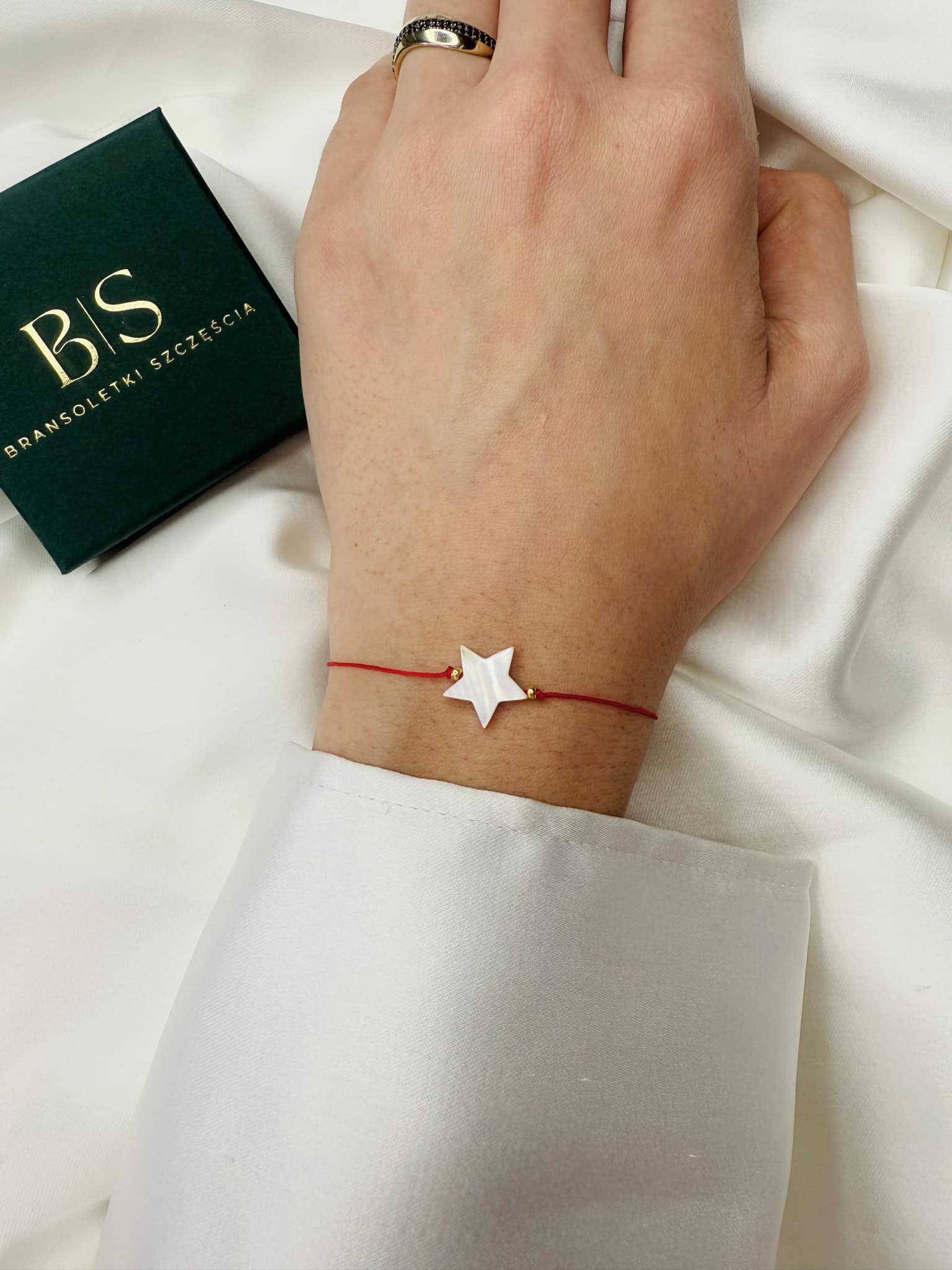 • Elegancki design: Gwiazdka z masy perłowej w połączeniu ze złotymi akcentami i czerwonym sznurkiem nylonowym tworzy elegancki a także subtelny wygląd.