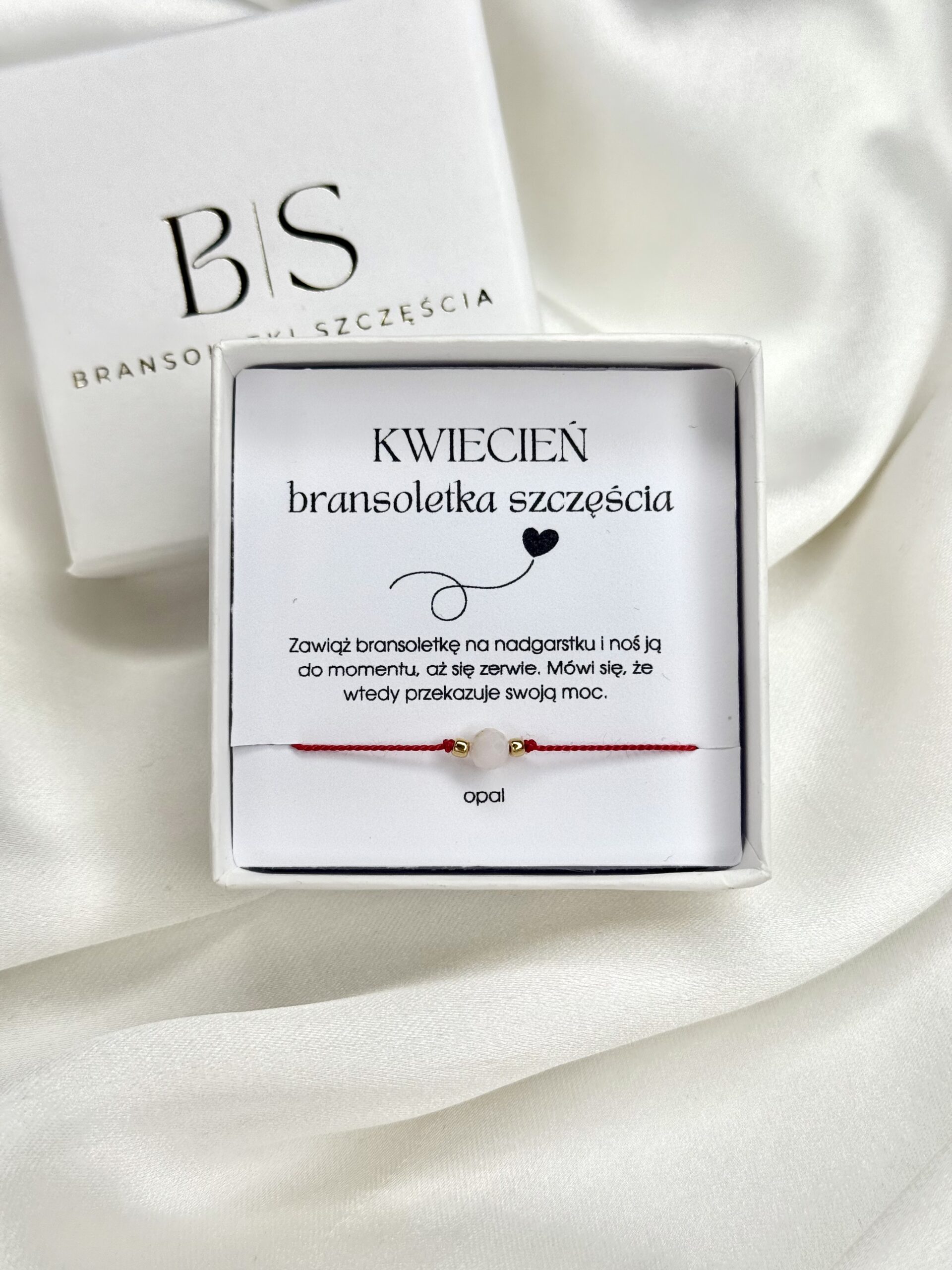 W bransoletce opal na szczęście kwiecień energia tego magicznego kamienia splata się z tradycyjną czerwoną nicią, tworząc talizman o szczególnej mocy dla osób urodzonych w tym miesiącu.