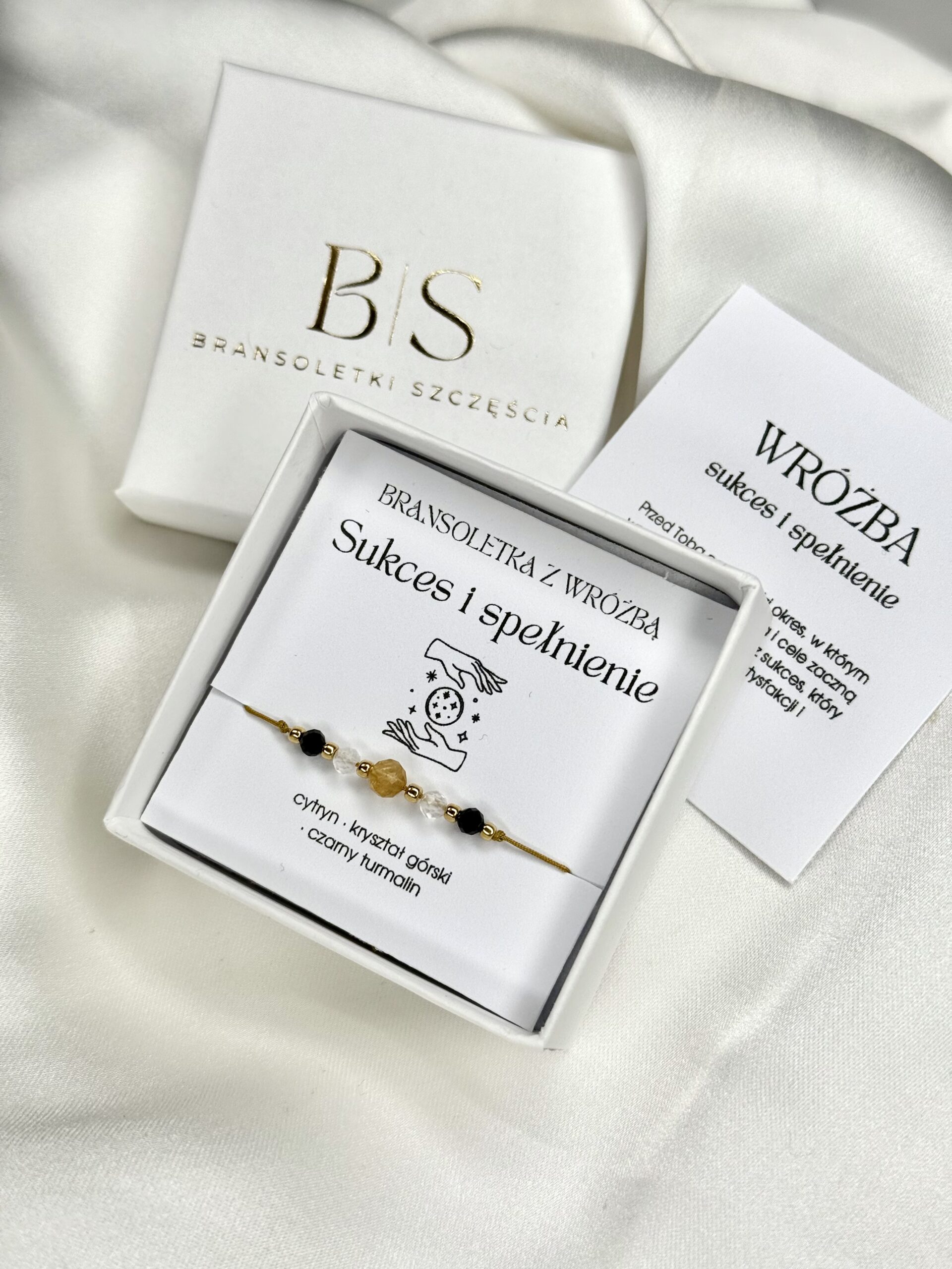 Bransoletka z Wróżbą – Sukces i Spełnienie | Kryształ Górski, Cytryn, Czarny Turmalin