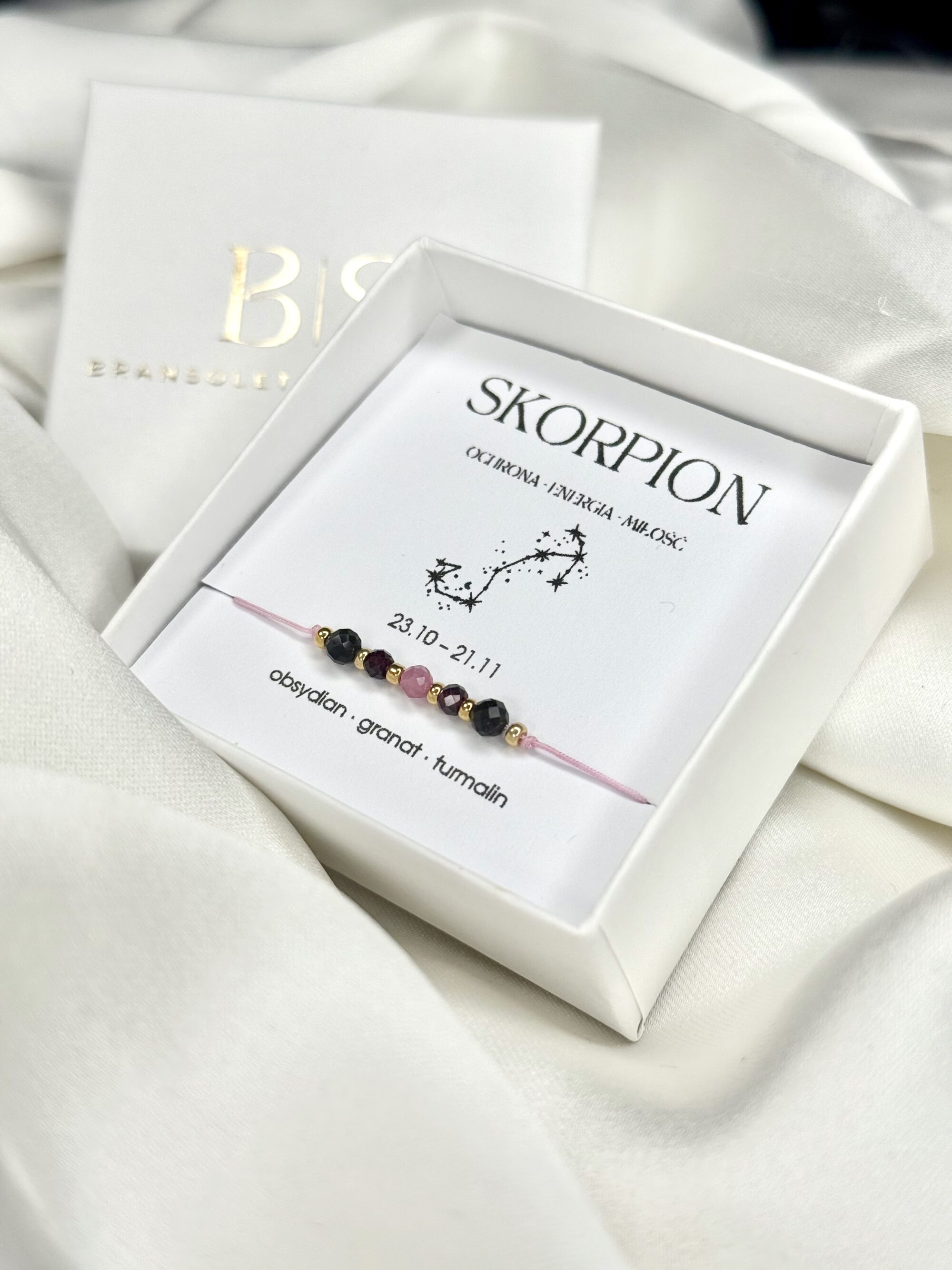 Bransoletka SKORPION to doskonały pomysł na prezent dla bliskiej osoby urodzonej pod tym znakiem zodiaku lub dla kogoś, kto pragnie wzmocnić swoją siłę wewnętrzną. Sprawdź nasze bransoletki na prezent i bransoletki dla dziewczyny.